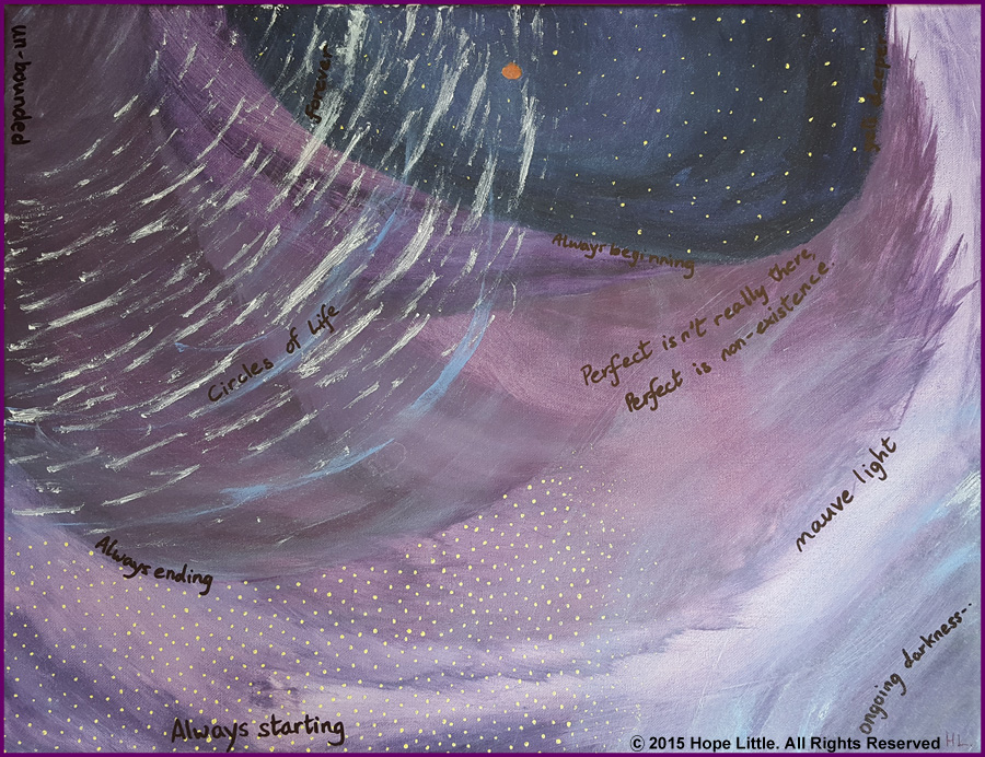 Space, UnboundedEditor's Note: This young person was given a brainstorming worksheet on "Space" at school. What she wrote become this artwork plus the poem, below. Click to see a full-sized image. Space, Unbounded Space is unbounded mauve light. (c) 2015 Hope Little. All rights reserved. Printed with permission. From the April/May 2015 issue of Michael Laughrin's North American Jyotish Newsletter. Click to subscribe to this free Jyotish newsletter. Read more articles. Yagyas offered by Michael Laughrin. |
